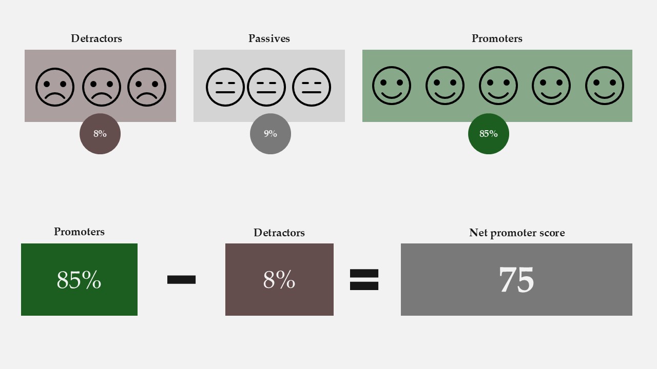 Udregningen er enkel: andelen af Promoters minus andelen af Detractors.